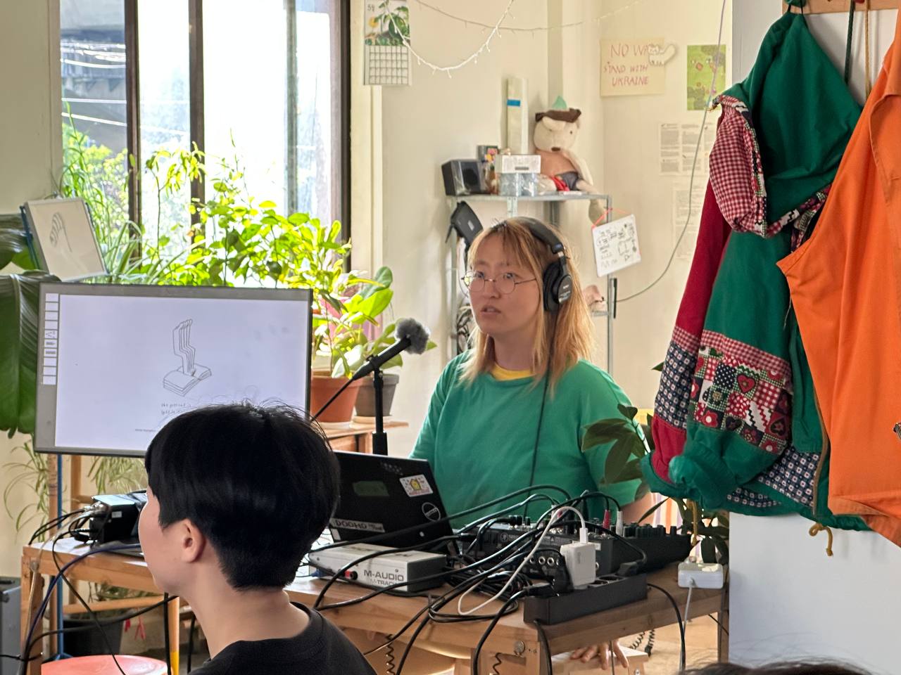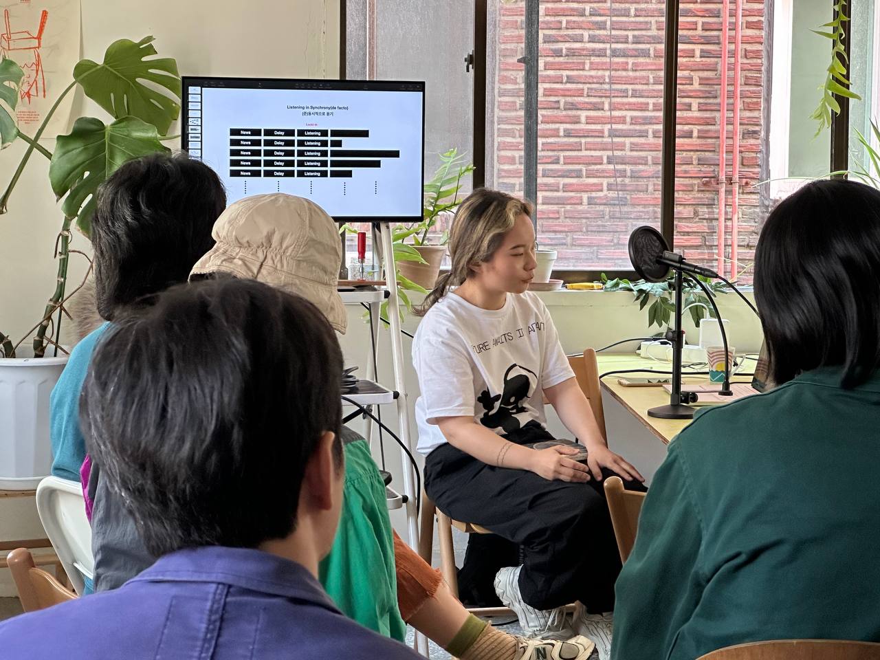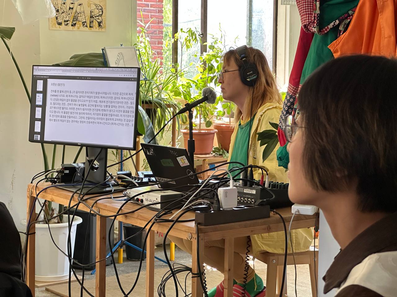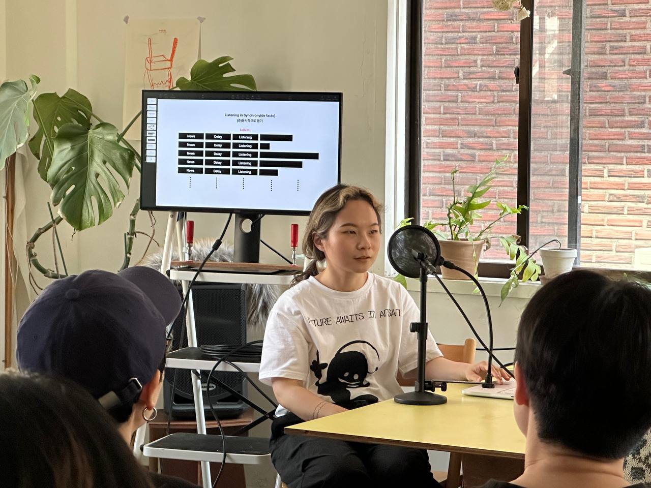 Radio Worlding Talk Radio carries the flow within the vessel of time. That flow which makes it difficult to discern whether we have boarded it ourselves, or are merely being swept along. The sound of radio sometimes recedes into the background, sometimes emerges as distinct form. It is an ancient signal technology that has connected us, tuned us, and synchronised us, knowingly or unknowingly. βRadio Wording Talkβ seeks to re-examine the rhythm of connecting our sense of time through the familiar medium of radio. Dooho's Radiopedia explores the technical aspects and phenomena surrounding radio. Radio is a kind of light. So, is light radio? This is a slightly strange question, but it serves as a good starting point for considering when radio began and how far we can extend the term βradioβ. Beginning with light waves and radio waves, it introduces the material world of radio as a substance that has provided the pretext for connection and solidarity β encompassing the various applied technologies that constitute today's fibre-optic and internet radio, and extending to artist radio, distinct from commercial radio. Im Heeju's Radio of Lukewarm Desire begins with the very experience of listening to radio we all know. Why is it that loving something so much leaves us unsatisfied merely by listening? Where exactly lies the right degree of real-time quality to shape the rhythm of the time we inhabit? Could it be that certain sounds we've been exposed to since before birth constitute our sonic unconscious? We invite you to an open-hearted radio worldβa lukewarm middle ground that doesn't overly intrude upon the real world, where our secret desires are compromised and the waveforms of affect are modulated. Choi Boryeon's Radio-Lock focuses on radio as a provider of a distributed listening experience where participants cannot observe or imitate one another. Considering radio's compulsory synchronisation mechanism, which fundamentally blocks attempts to profit from speculative gains based on prospects of impending future fluctuations, she proposes a radio world that mixes together categories that βnormalβ people would consider separate.